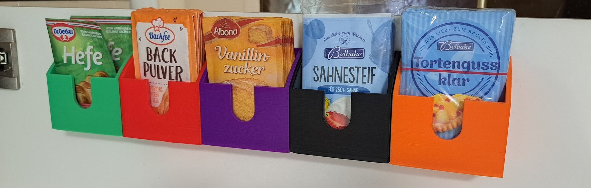 Kleine Bunte 3D gedruckte Backzutatenhalter die perfekt für ihre Küchenschränke sind und sich auch super an Backinteressierte verschenken lassen.